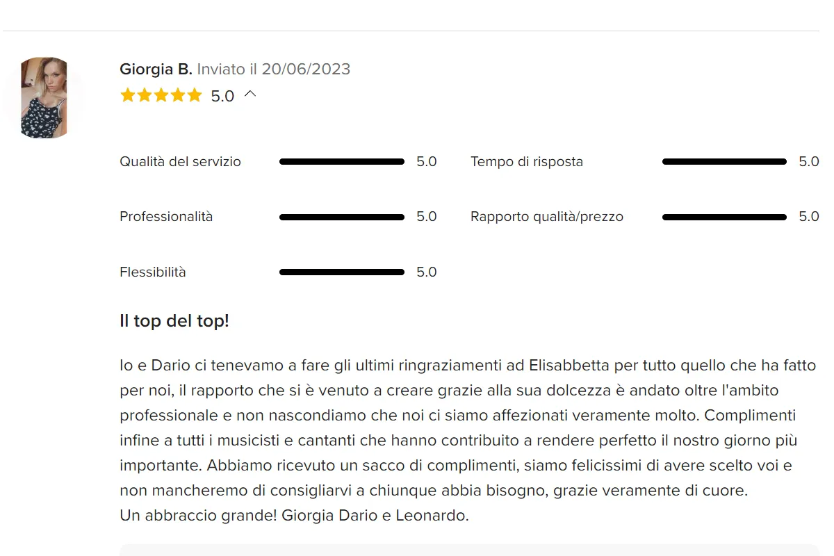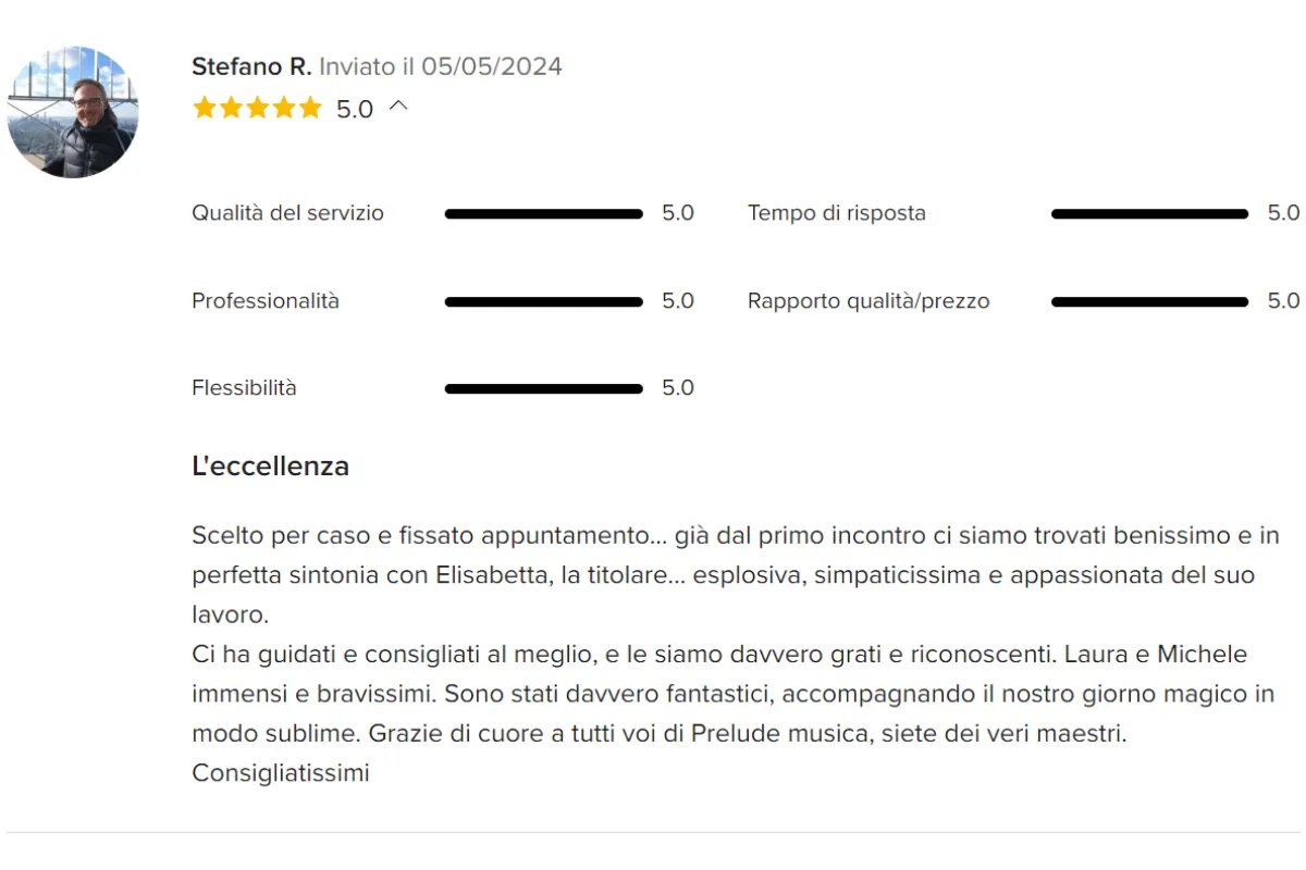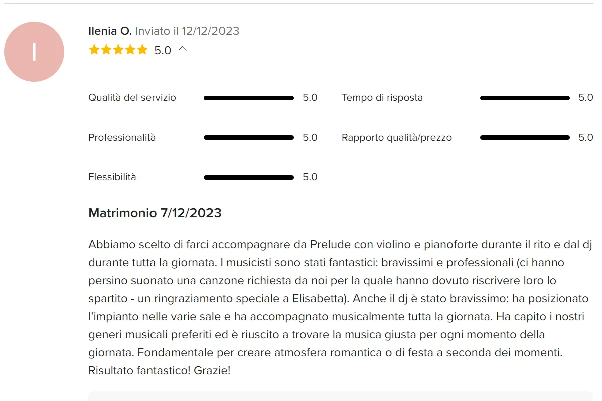 Vivi all’estero ma vuoi sposarti in Italia? Il tuo obiettivo è di coronare il tuo sogno d’amore in una location italiana in particolare nel Nord Italia o in Toscana, ma sei preoccupato di non trovare i fornitori per la musica e l’intrattenimento? Scegli Prélude, i professionisti della musica matrimoni e dell’intrattenimento durante la festa.